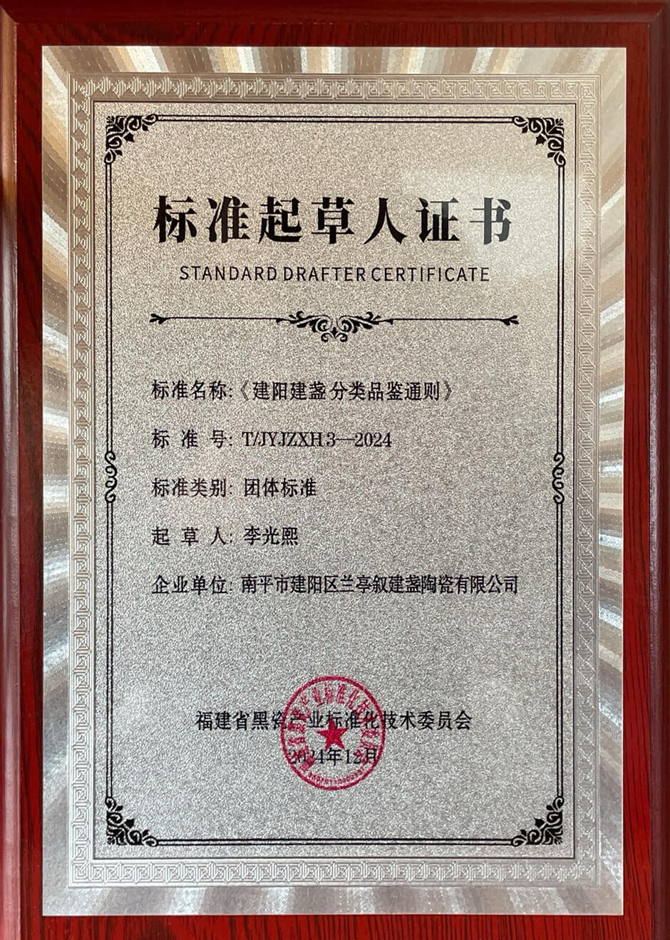 2012.01-作品《现代建窑油滴盏》被南平市博物馆收藏;