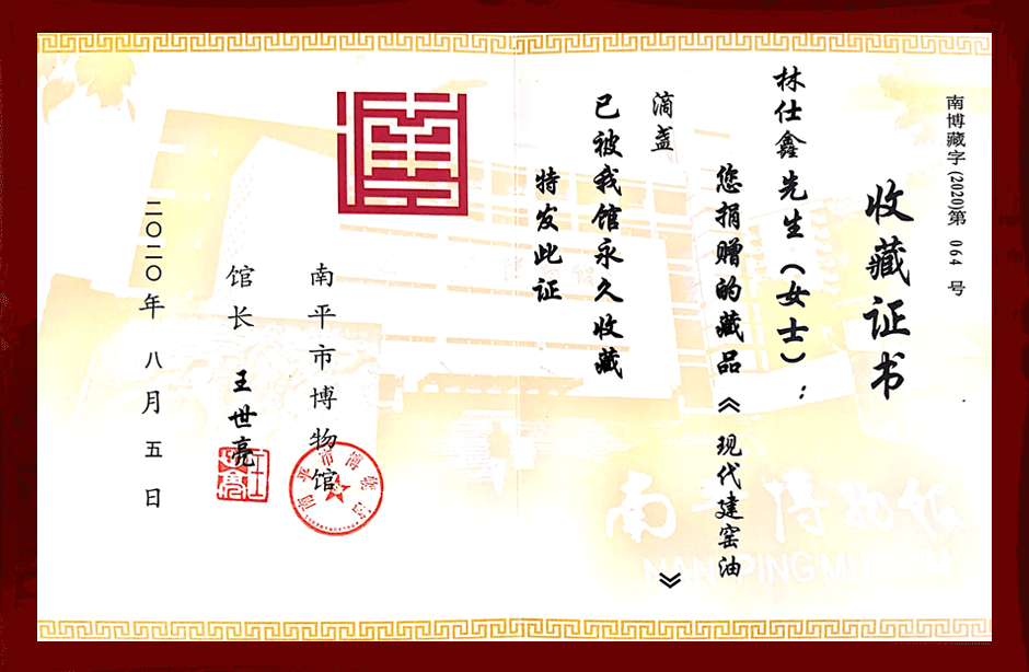 2020年8月-作品《现代建窑油滴盏》被南平市博物馆永久收藏;