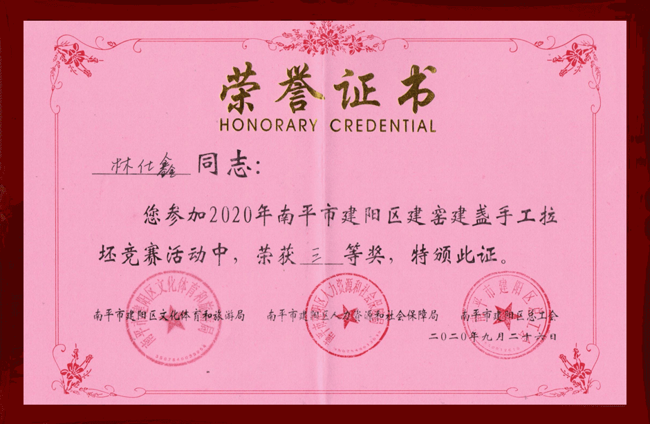 2020年9月-参加建窑建盏手工拉坯竞赛获得三等奖;
